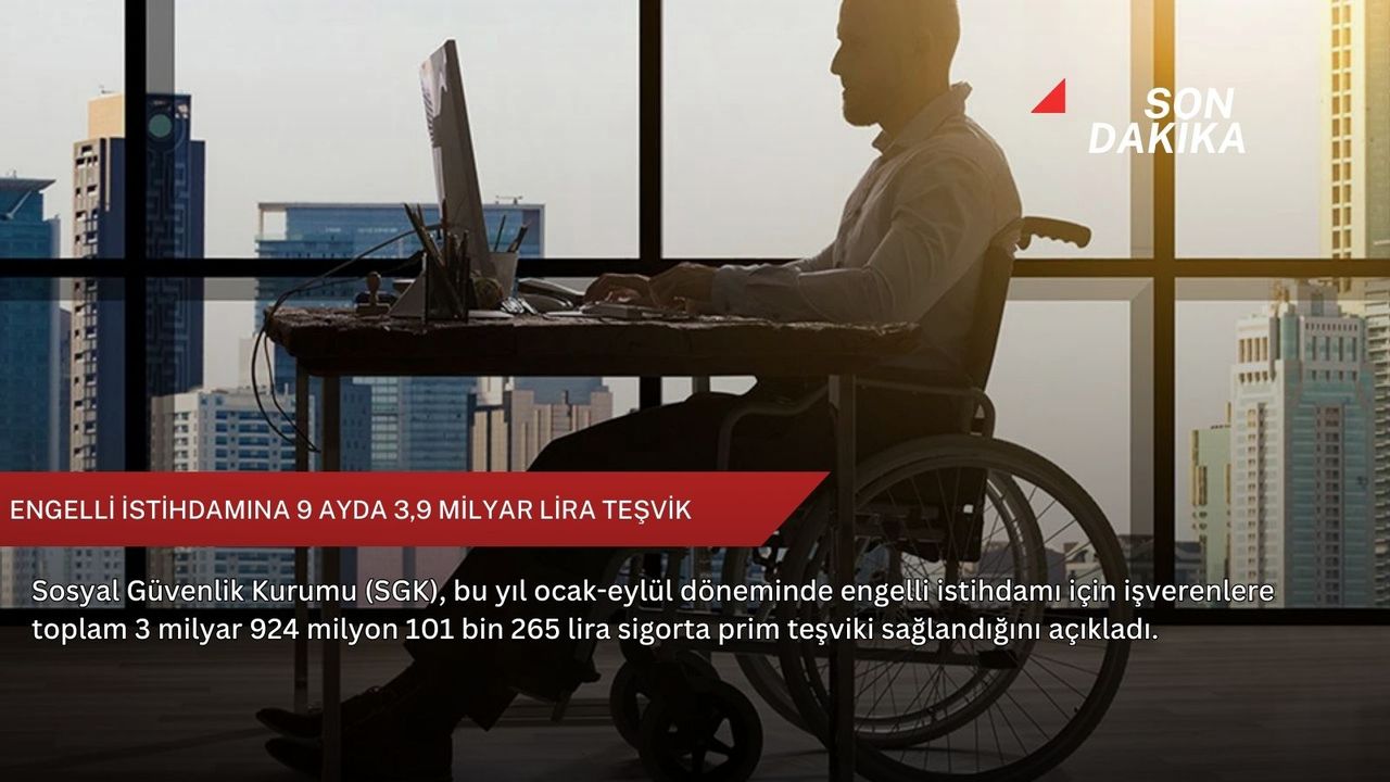 NSosyal hesabından yapılan paylaşımda, "2025 Eylül ayında istihdam edilen 110 bin 833 engelli vatandaşımız için 50 bin 98 iş yeri teşvikten faydalandırıldı. 2025 Ocak-Eylül döneminde engelli istihdamı için işverenlere toplam 3 milyar 924 milyon 101 bin 265 lira tutarında sigorta prim teşviki sağladık. 2025 Ocak-Ekim döneminde, en az yüzde 60 çalışma gücü kaybı olan 1222 malul erkek yetime muhtaçlık durumunda yaş şartı aranmaksızın yetim aylığı bağladık" ifadelerine yer verildi.