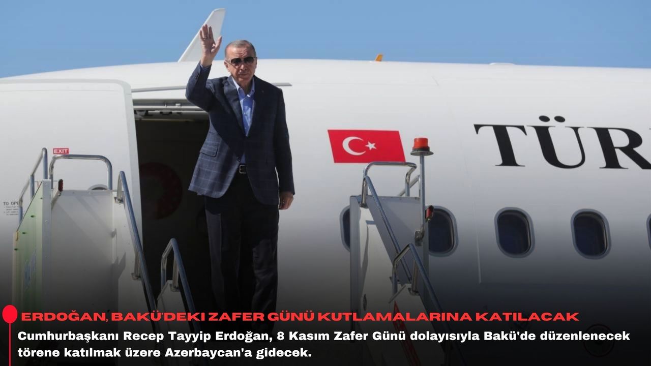 Cumhurbaşkanı İletişim Başkanı Burhanettin Duran, NSosyal hesabından yaptığı açıklamada, Cumhurbaşkanı Recep Tayyip Erdoğan'ın 8 Kasım Zafer Günü münasebetiyle Bakü'de düzenlenecek törene katılmak üzere Azerbaycan'ı ziyaret edeceğini aktardı.