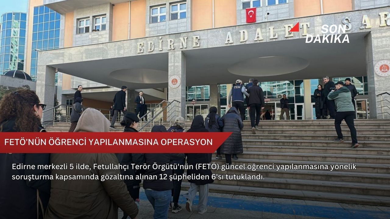 Edirne Cumhuriyet Başsavcılığınca 4 gün önce FETÖ'nün güncel öğrenci yapılanmasının deşifre edilmesine yönelik başlatılan soruşturma kapsamında gözaltına alınan şüphelilerden 6'sı Edirne Emniyet Müdürlüğü Terörle Mücadele Şubesi'ndeki işlemlerinin ardından dün adliyeye sevk edildi.