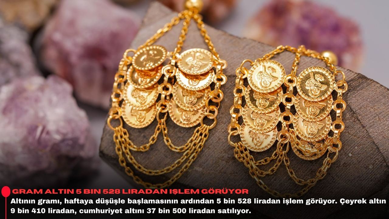 Cuma günü ons fiyatındaki düşüşe paralel değer kaybeden gram altın, günü yüzde 1,9 azalışla 5 bin 549 liradan tamamladı. Haftaya düşüşle başlayan gram altın, saat 09.35 itibarıyla önceki kapanışın yüzde 0,5 altında 5 bin 528 lira seviyesinde bulunuyor.