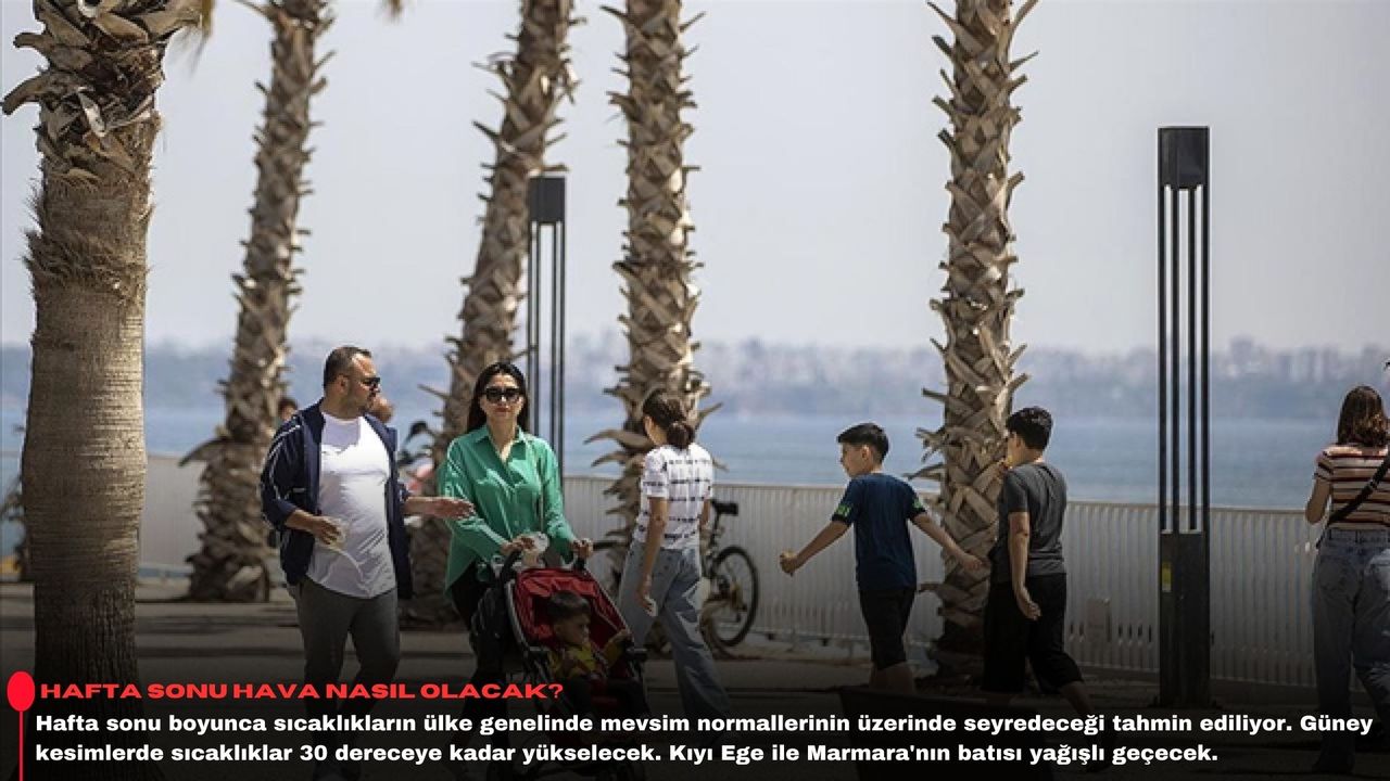 Hafta sonu beklenen günün en yüksek sıcaklık değerleri Ankara'da 21, Samsun'da 25, İzmir'de 24, Antalya'da 28, Adana'da 31, Diyarbakır'da 19, Erzurum'da 12 derece civarında seyredecek.