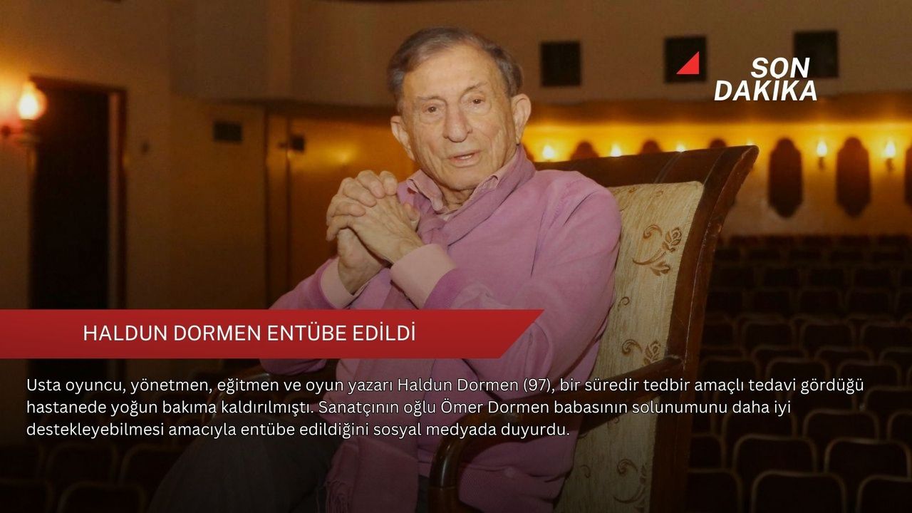 Oyuncu, yönetmen, eğitmen ve oyun yazarı kimliğiyle Türk tiyatrosuna damga vuran 97 yaşındaki Haldun Dormen, geçirdiği enfeksiyon nedeniyle bir süredir özel bir hastanede tedavi altındaydı. Tedavisi devam eden usta sanatçı, yaklaşık bir hafta önce yoğun bakıma alındı.