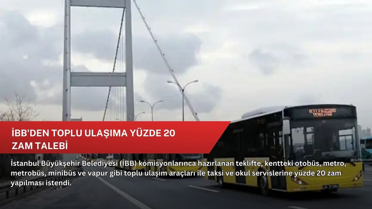 Komisyonlar tarafından hazırlanan ve bugünkü İBB Meclisi toplantısındaki gündemde yer alan teklifte, kentteki otobüs, metro, metrobüs, minibüs ve vapur gibi toplu ulaşım araçları ile taksi ve okul servislerine yüzde 20 zam yapılması talep edildi.