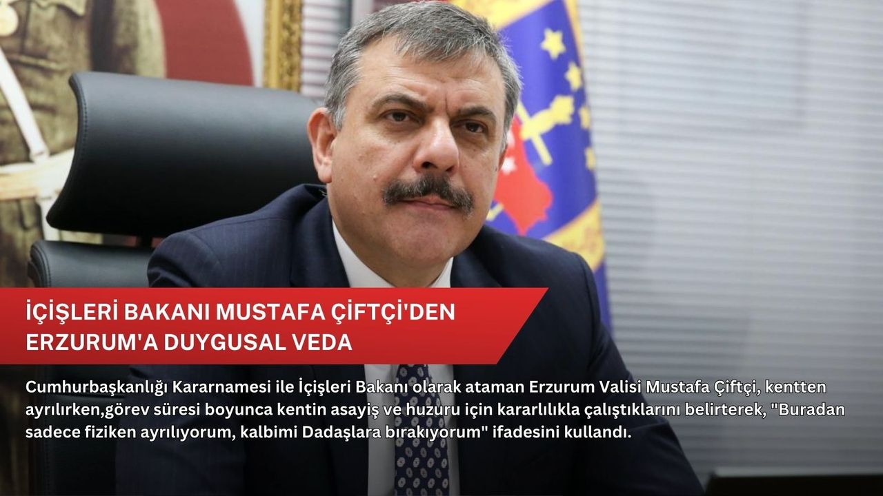İçişleri Bakanı olarak atanan Vali Mustafa Çiftçi, Erzurum’da geçirdiği 2,5 yıllık süreci değerlendirdiği açıklamasında, görev süresi boyunca Erzurum halkıyla güçlü bir bağ kurduklarını vurgulayarak, kentte hiçbir zaman yabancılık çekmediklerini dile getirdi.