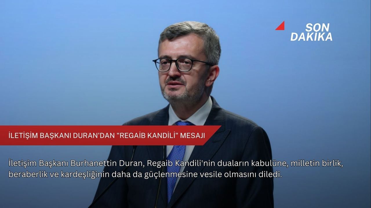 İletişim Başkanı Burhanettin Duran, NSosyal hesabından Regaib Kandili dolayısıyla paylaşımda bulundu.