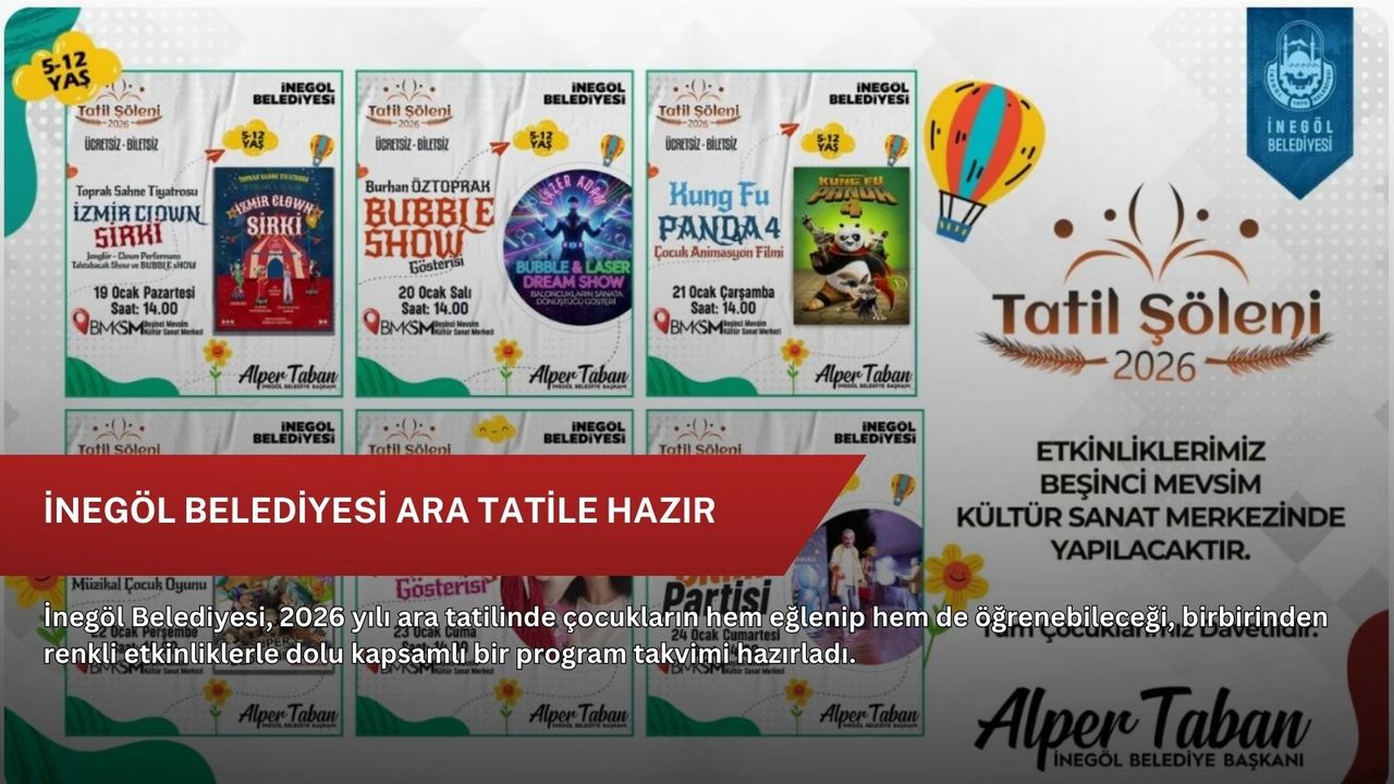 İnegöl Belediye Başkanı Alper Taban, ara tatilde çocukların keyifli ve verimli vakit geçirmesini önemsediklerini belirterek, “Çocuklarımızın yüzünü güldürecek, hayal dünyalarını geliştirecek ve güzel anılar biriktirecekleri bir tatil programı hazırladık. Tüm çocuklarımızı Tatil Şöleni 2026 etkinliklerimize davet ediyorum.” dedi.