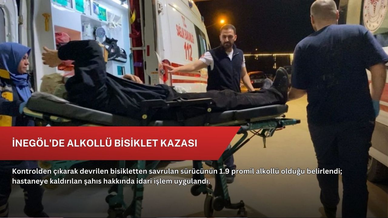 İhbar üzerine olay yerine gelen sağlık ekipleri, yaralıya ilk müdahaleyi yaptıktan sonra ambulansla İnegöl Devlet Hastanesi’ne sevk etti. Burada yapılan kontrolde sürücünün 1.9 promil alkollü olduğu tespit edildi.