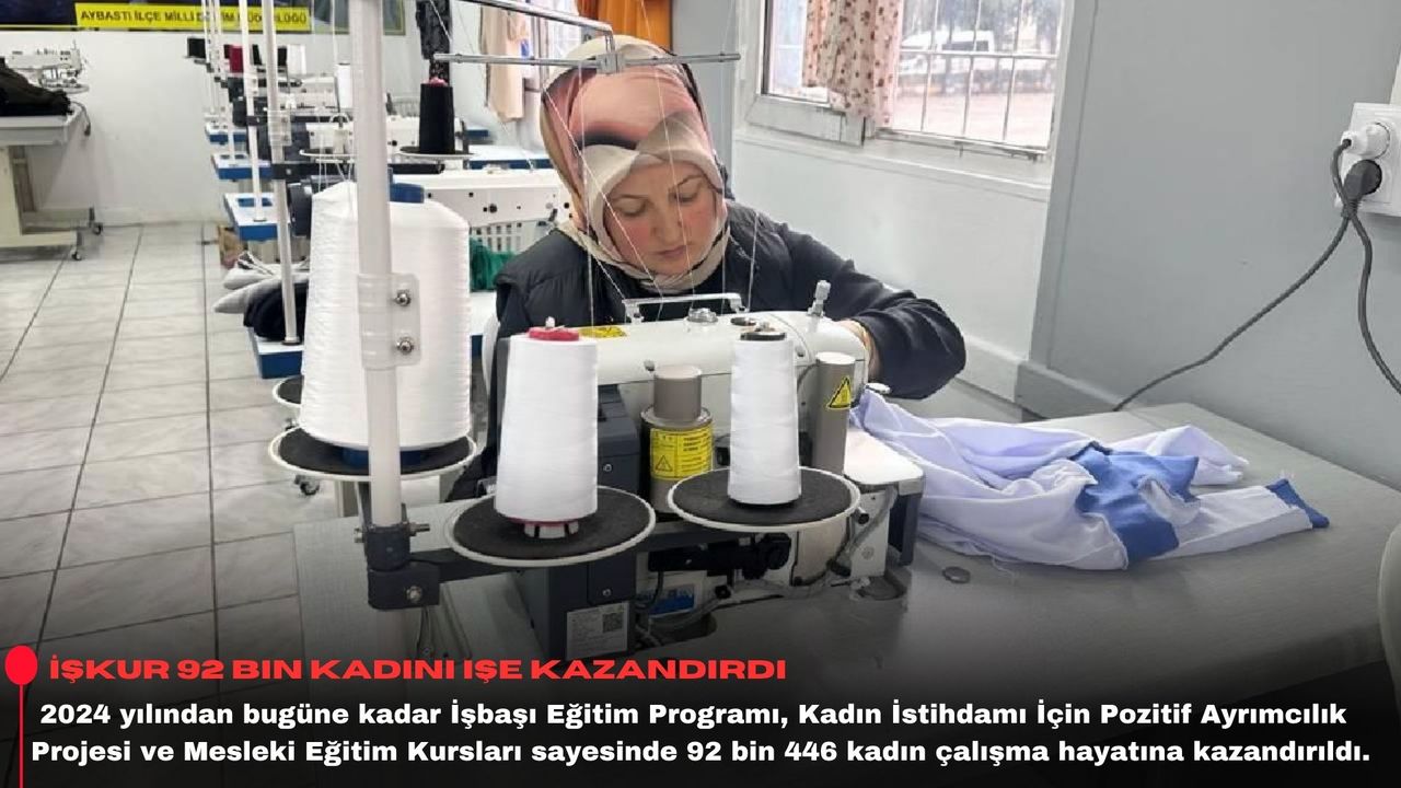 "2024 yılından bugüne İşbaşı Eğitim Programı (İEP), Kadın İstihdamı İçin Pozitif Ayrımcılık Projesi (KİPAP) ve Mesleki Eğitim Kursları (MEK) sayesinde 92.446 kadının çalışma hayatına adım atmasını sağladık. Çalışmanın, üretimin, kalkınmanın yüzyılını kadınların güçlü desteğiyle inşa ediyoruz. 'ispozitifharita.iskur.gov.tr' adresinden verilerimizi anlık şekilde paylaşıyoruz."