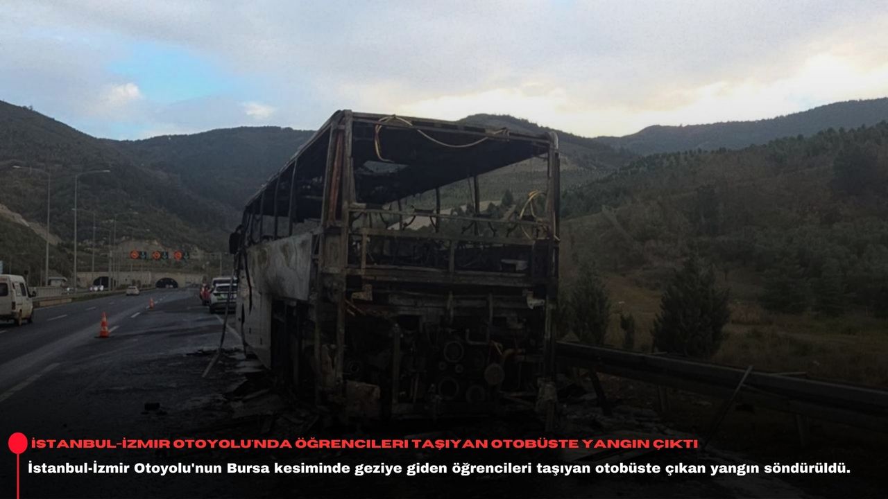 Çanakkale'nin Lapseki ilçesindeki bir ortaokuldan İstanbul'a gezi için yola çıkan, içinde 39 öğrenci, 6 öğretmen ve 2 rehberin bulunduğu Ahmet Kantarcı idaresindeki otobüs, İstanbul-İzmir Otoyolu Orhangazi Tüneli yakınlarında motor bölümünden alev aldı.