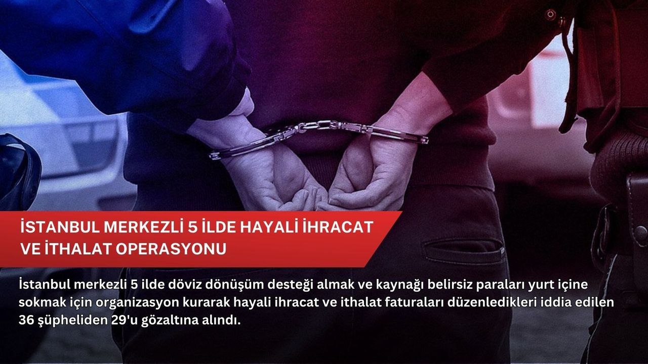 Gerçek ve tüzel kişiliklere ait suç tarihinden itibaren elde edildiği değerlendirilen 9 şirket, 1 dükkan, 25 tarla-arsa, 12 konut/daire ve 104 araca el konulmasına karar verildiği belirtilen açıklamada, İstanbul merkezli Ankara, Antalya, Kocaeli ve Kayseri olmak üzere 5 ilde 36 şüpheli ve 9 iş yerine yönelik eş zamanlı operasyonda 29 zanlının gözaltına alındığı belirtildi.