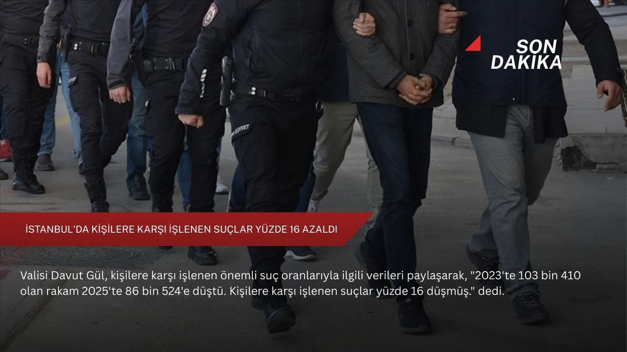 "2023'te 103 bin 410 olan rakam 2025'te 86 bin 524'e düştü. Kişilere karşı işlenen suçlar yüzde 16 düşmüş. (2023-2025 değişimi) Kasten öldürme yüzde 20, kasten yaralama yüzde 14, cinsel suçlar yüzde 23, kişilerin huzur ve sükununu bozma yüzde 26, kişiyi hürriyetinden yoksun kılma yüzde 20, konut dokunulmazlığının ihlali yüzde 37 düştü. Bu suçların aydınlanma oranları 2023'te yüzde 97,6 iken 2025'te 99,6 olarak gerçekleşti. Bu şu demek, hemen hemen kişilere karşı işlenen suçların tamamı aydınlatılıyor ve bu aydınlatma oranları da yükseliyor. Asayiş, güvenlik olaylarına bizler istatistik olarak bakmıyoruz. Bunu gösterme sebebimiz, düştüğünü göstermek. Ortadan kalktı gibi bir iddiamız yok. İstanbul'da 16 milyondan fazla insan yaşıyor. Dolayısıyla olumsuz örnekleri her zaman görebiliriz. Ama iki sene öncesine göre yüzde 16 düşmesi kolluk kuvvetlerimizin önemli bir başarısı."