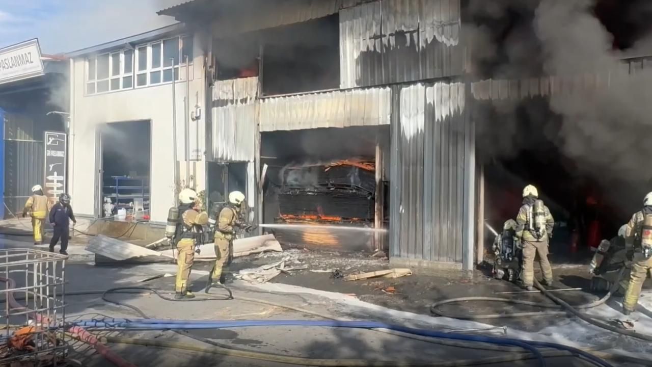Birlik Sanayi Sitesi'nde ahşap üretimi yapan 2 katlı iş yerinde henüz belirlenemeyen nedenle yangın çıktı.