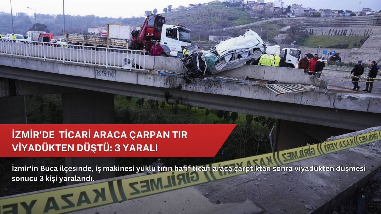 Buca ilçesinden Konak Tünelleri yönüne ilerleyen M.Ş.'nin kullandığı dorsesinde ekskavatör yüklü tır, Uçan Yol mevkisinde İ.B.K'nin idaresindeki hafif ticari araca çarptı.