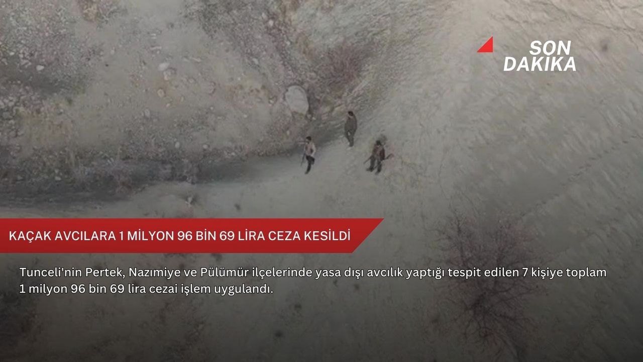 "Pertek, Nazımiye ve Pülümür ilçelerinde yasa dışı avcılık yaptığı tespit edilen 7 kişiye toplam 1 milyon 96 bin 69 lira idari para cezası uygulanmıştır. Ayrıca bir kişinin ikametinde yapılan aramada ruhsatsız silah, susturucu ve mühimmat ele geçirilmiş olup, ilgili kişi 6136 sayılı kanun kapsamında gözaltına alınarak tutuklanmıştır. Tunceli Valiliği olarak, doğamızın korunması ve biyolojik çeşitliliğimizin sürdürülebilirliği için yasa dışı avcılığa karşı mücadelemizi kararlılıkla sürdürüyoruz. Tüm birimlerimizle sahada denetimlerimiz aralıksız devam etmekte olup vatandaşlarımızın huzur ve güvenliği için çalışmalar titizlikle yürütülmektedir."