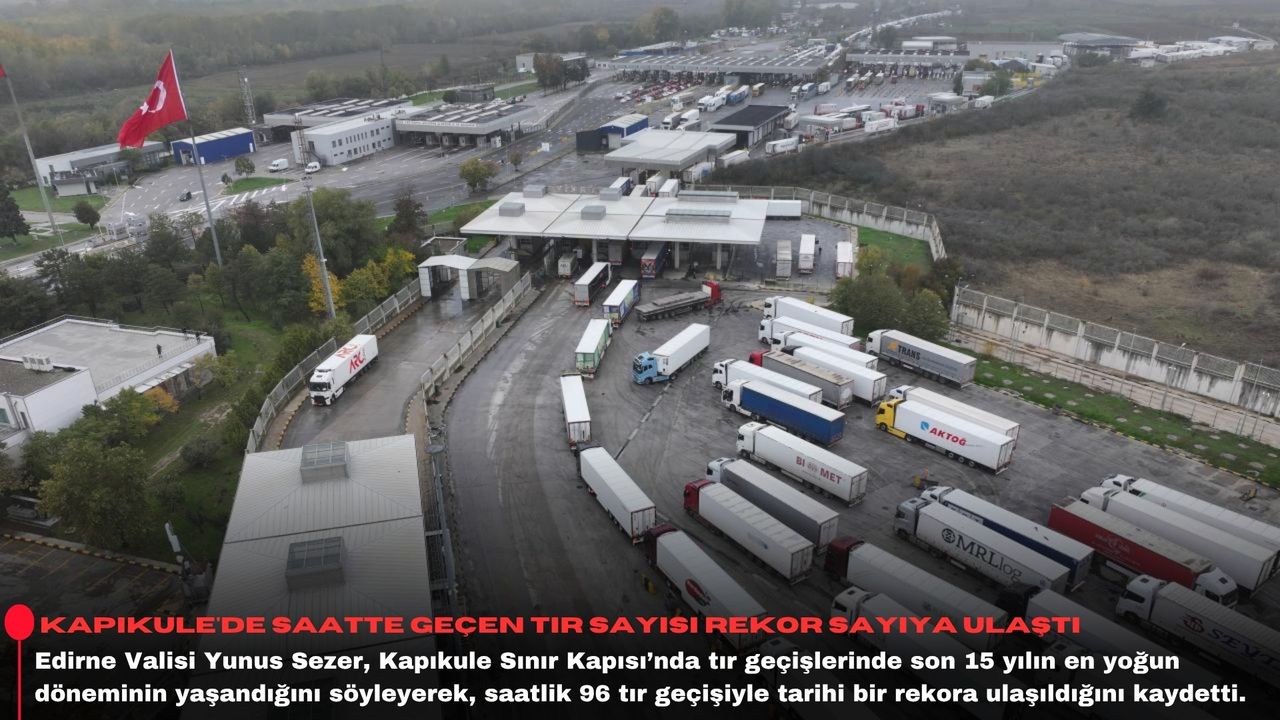 "Hamzabeyli, Kapıkule, İpsala ve Pazarkule sınır kapılarımızda 10 ayda 4 milyon 400 bin araç geçişi oldu. Bu araçlardan 1 milyon 409 bini tırları kapsıyor. Kasım ayı itibariyle bir haftayı geride bıraktık, bu kapılardan 80 bin 500 araç geçişi var, bunlardan 29 bini tır giriş ve çıkışını içeriyor.