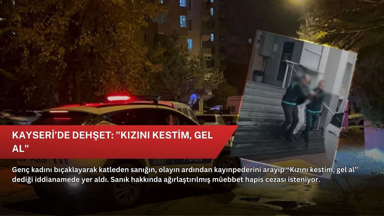 Kayseri Cumhuriyet Başsavcılığı tarafından hazırlanan ve Kayseri Ağır Ceza Mahkemesi’nce kabul edilen iddianamede, sanığın olayın ardından eşinin babasını arayarak “Kızını kestim, gel al” dediği bilgisine yer verildi. Tanık beyanlarına göre sanığın daha sonra polisi arayarak kendisini ihbar ettiği aktarıldı.