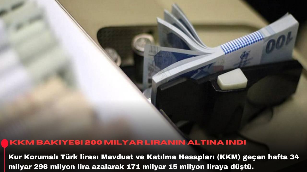 KKM bakiyesi ise geçen hafta 34 milyar 296 milyon lira azalarak 171 milyar 15 milyon liraya geriledi. Böylece KKM büyüklüğü, toplam mevduatın yüzde 0,67'si oldu.