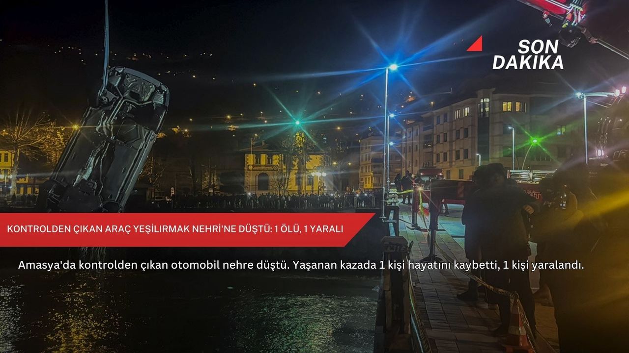 Sürücüsü henüz öğrenilmeyen otomobil, İstasyon Köprüsü korkuluklarına çarparak Yeşilırmak Nehri'ne düştü.