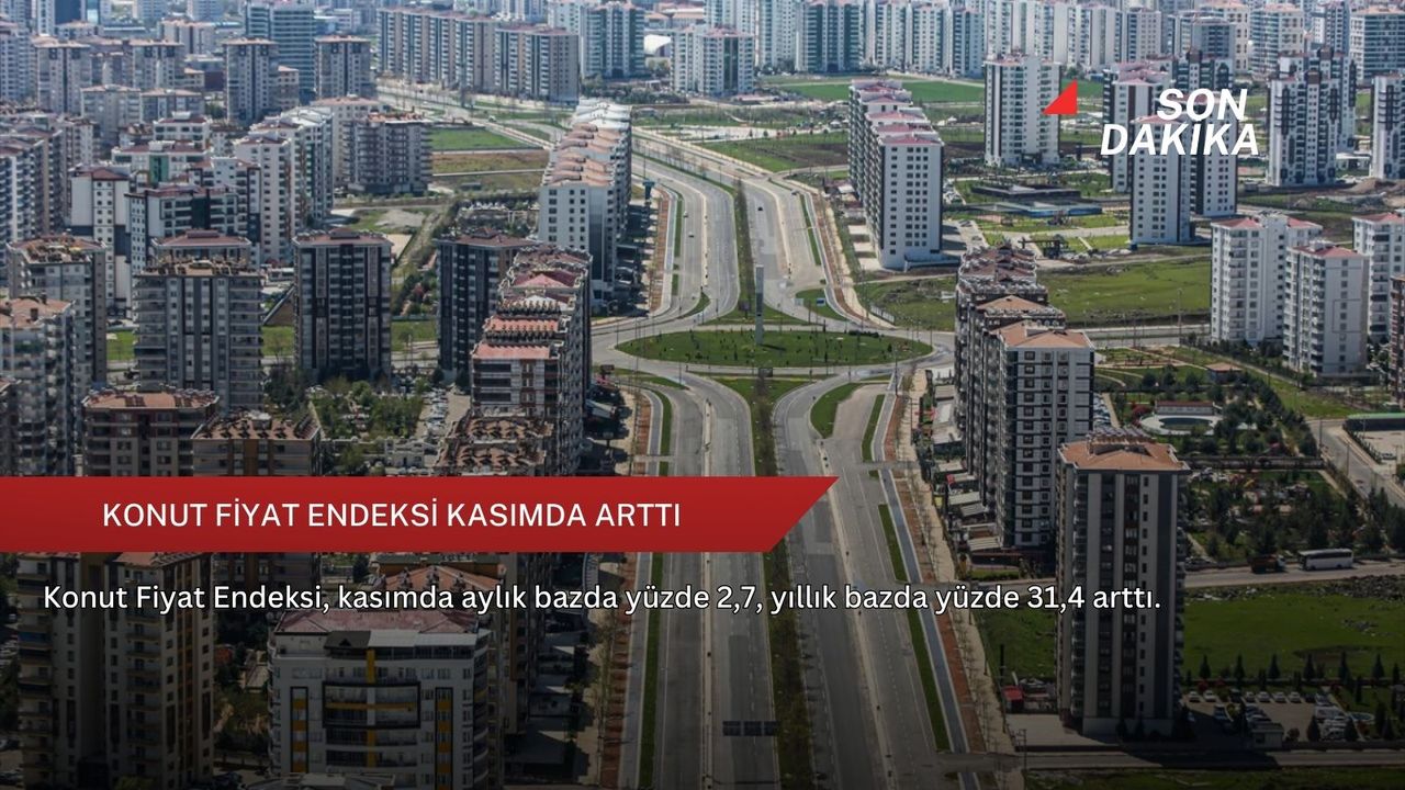 Buna göre, Türkiye'deki konutların kalite etkisinden arındırılmış fiyat değişimlerini izlemek amacıyla hesaplanan KFE, kasımda bir önceki aya göre yüzde 2,7 artarak 204,2'ye çıktı.