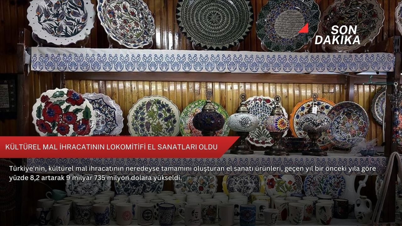 Kültürel alanlara bakıldığında, en yüksek paya sahip el sanatları ürünlerinin ihracat toplamı, geçen yıl bir önceki yıla göre yüzde 8,2 artışla 8 milyar 996 milyon dolardan 9 milyar 735 milyon dolara çıktı. El sanatlarının toplam kültürel mal ihracatı içindeki payı, yüzde 98,5 olarak kaydedildi.