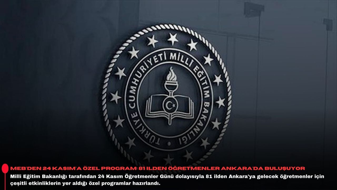 MEB Milli Eğitim Akademisi Başkanlığı koordinasyonunda hazırlanan etkinlikler kapsamında, 81 ili temsilen resmi ve özel eğitim kurumlarından öğretmenler, 21-26 Kasım tarihlerinde Ankara'da ağırlanacak.