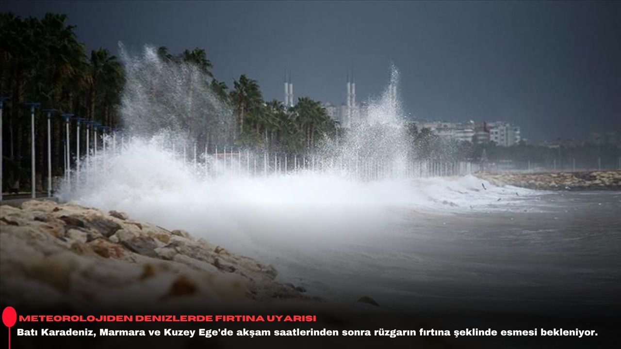 Meteoroloji Genel Müdürlüğünden yapılan açıklamaya göre, Batı Karadeniz'in batısı ile Kuzey Ege'de akşam saatlerinden sonra güney ve güneybatıdan 6 ila 8 kuvvetinde fırtına bekleniyor. Fırtınanın yarın öğle saatlerinden itibaren etkisini kaybedeceği tahmin ediliyor.