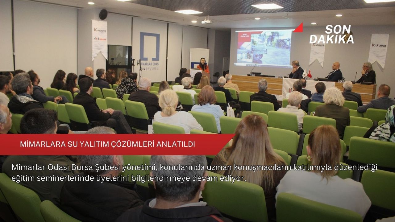 Seminerin açılışında konuşan Mimarlar Odası Bursa Şubesi Yönetim Kurulu Başkanı Şirin Rodoplu Şimşek, “Mimarların doğrudan çalışma alanlarından birisi de elbette yalıtımdır ve su yalıtımı her mimarın en çok sıkıntı yaşadığı alanlarda bir tanesidir. Üyelerimiz için böylesine önemli bir konuda etkinlik düzenlediğimiz için mutluyuz” dedi.