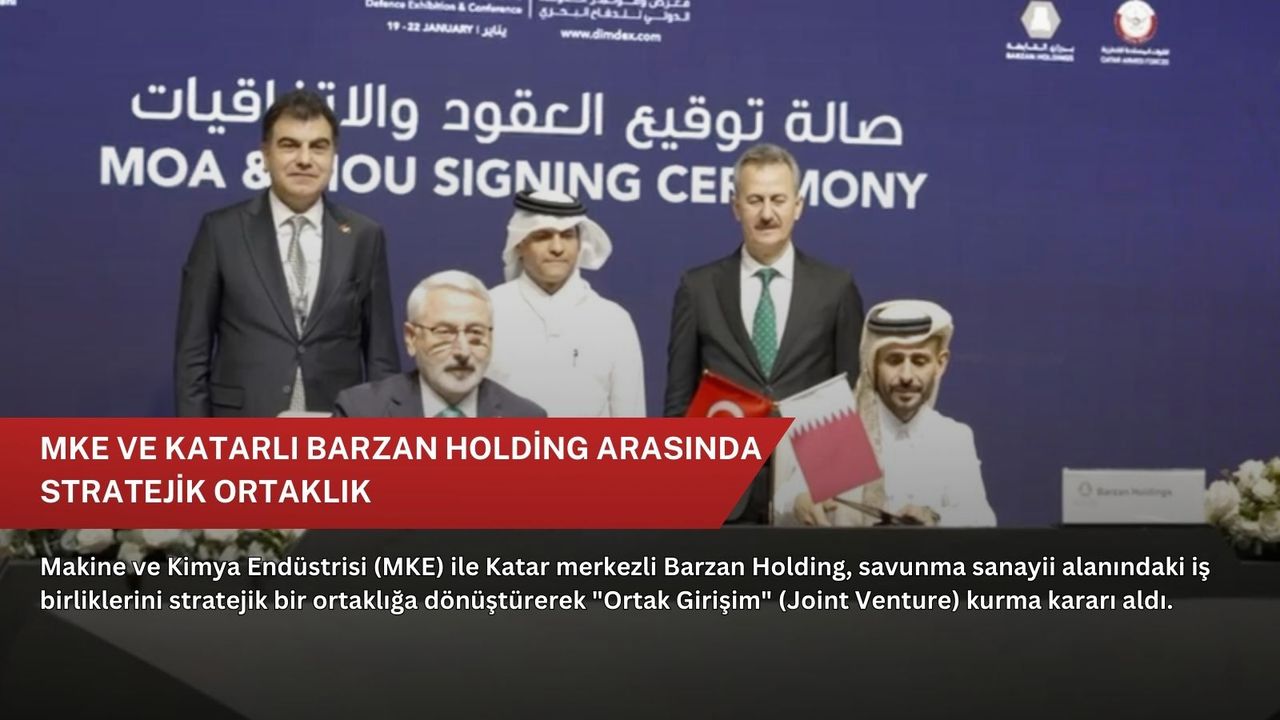 İmzalanan mutabakat zaptı ile iki ülke arasındaki savunma bağları kurumsal bir kimlik kazanacak. Anlaşma uyarınca; MKE ve Barzan Holding ortaklığında Katar’da yeni bir şirket kurulacak. Söz konusu ortaklık aracılığıyla Katar’a patlayıcı madde üretim kabiliyeti kazandırılacak. MKE’nin yüksek teknoloji ürünü olan TOLGA Yakın Hava Savunma Sistemi, Katar ordusunun envanterine girecek.