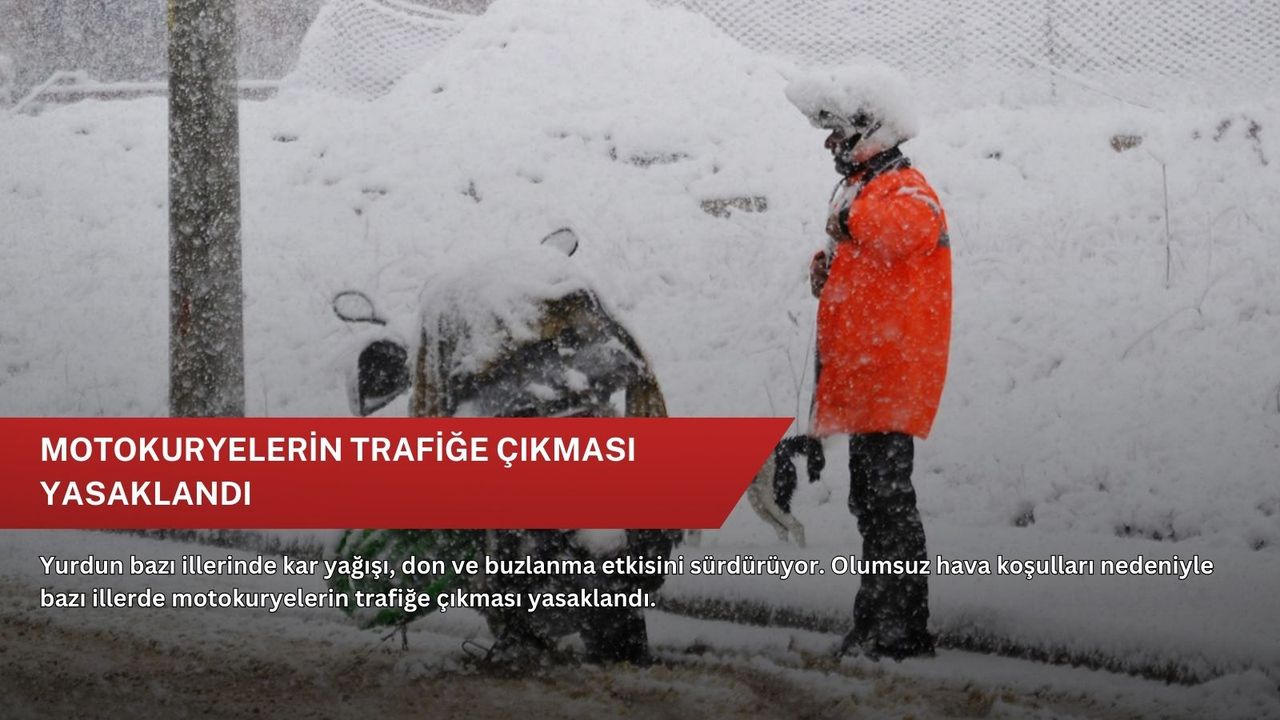 Kar yağışı ve buzlanma nedeniyle ulaşımda yaşanabilecek olumsuzluklara karşı birçok ilde motokuryelerin trafiğe çıkması yasaklandı.