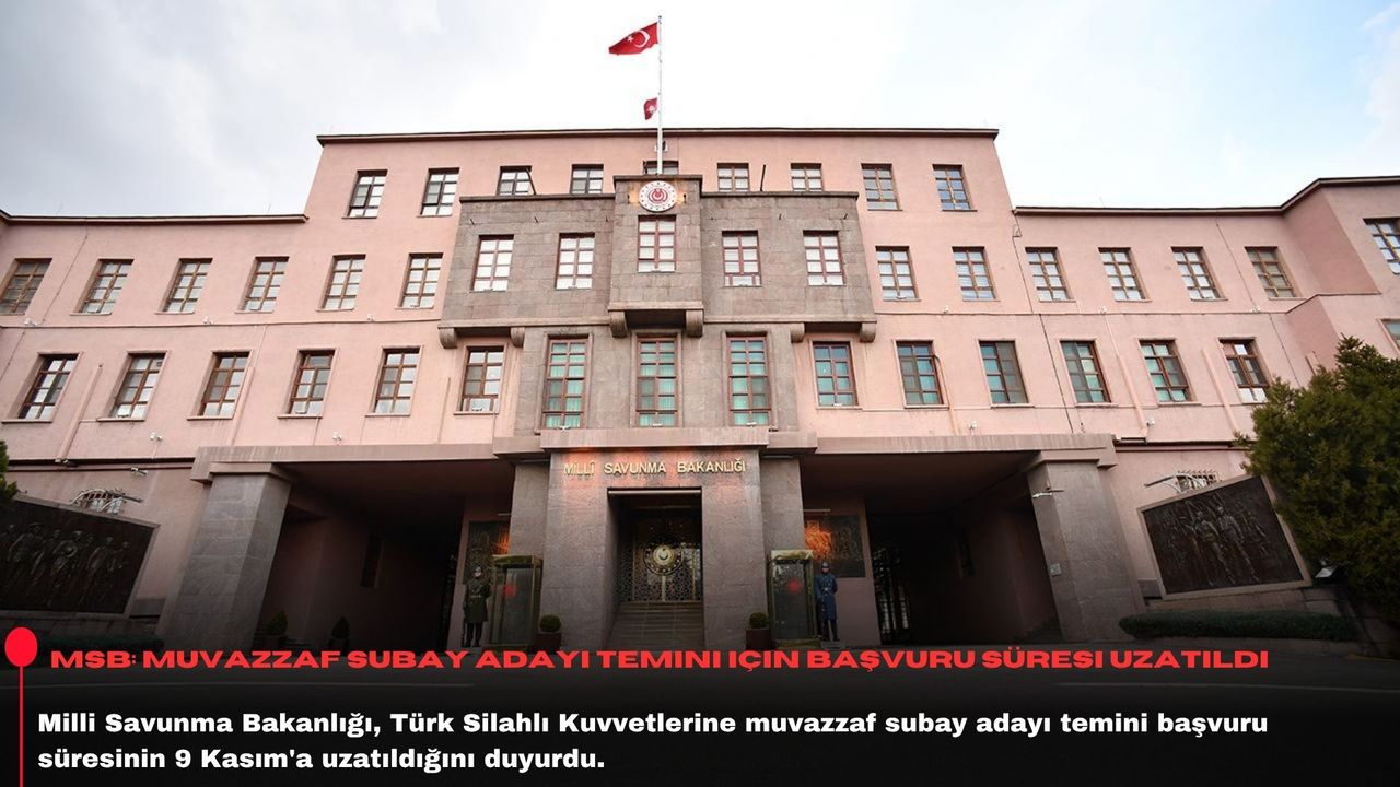 Bakanlığın NSosyal'deki hesabından yapılan paylaşımda, "Türk Silahlı Kuvvetlerine En Az Dört Yıl Süreli Fakülte veya Yüksekokulu Mezunlarından 2025 Yılı Muvazzaf Subay Adayı Temini Başvurusu 9 Kasım 2025 tarihine kadar uzatılmıştır." ifadesi kullanıldı.