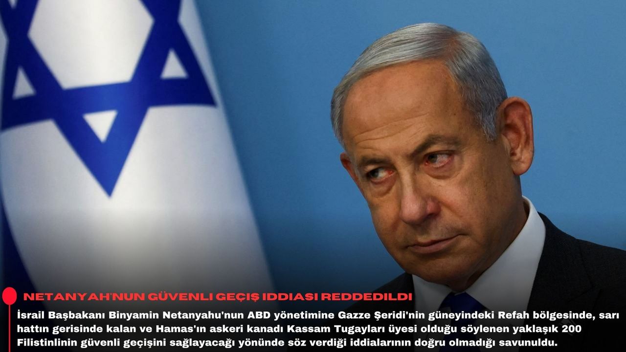 Netanyahu'nun ofisinden yapılan yazılı açıklamada, Refah'taki yaklaşık 200 Kassam üyesinin güvenli geçişini değerlendirdiği yönündeki haberin doğru olmadığı kaydedilmişti.