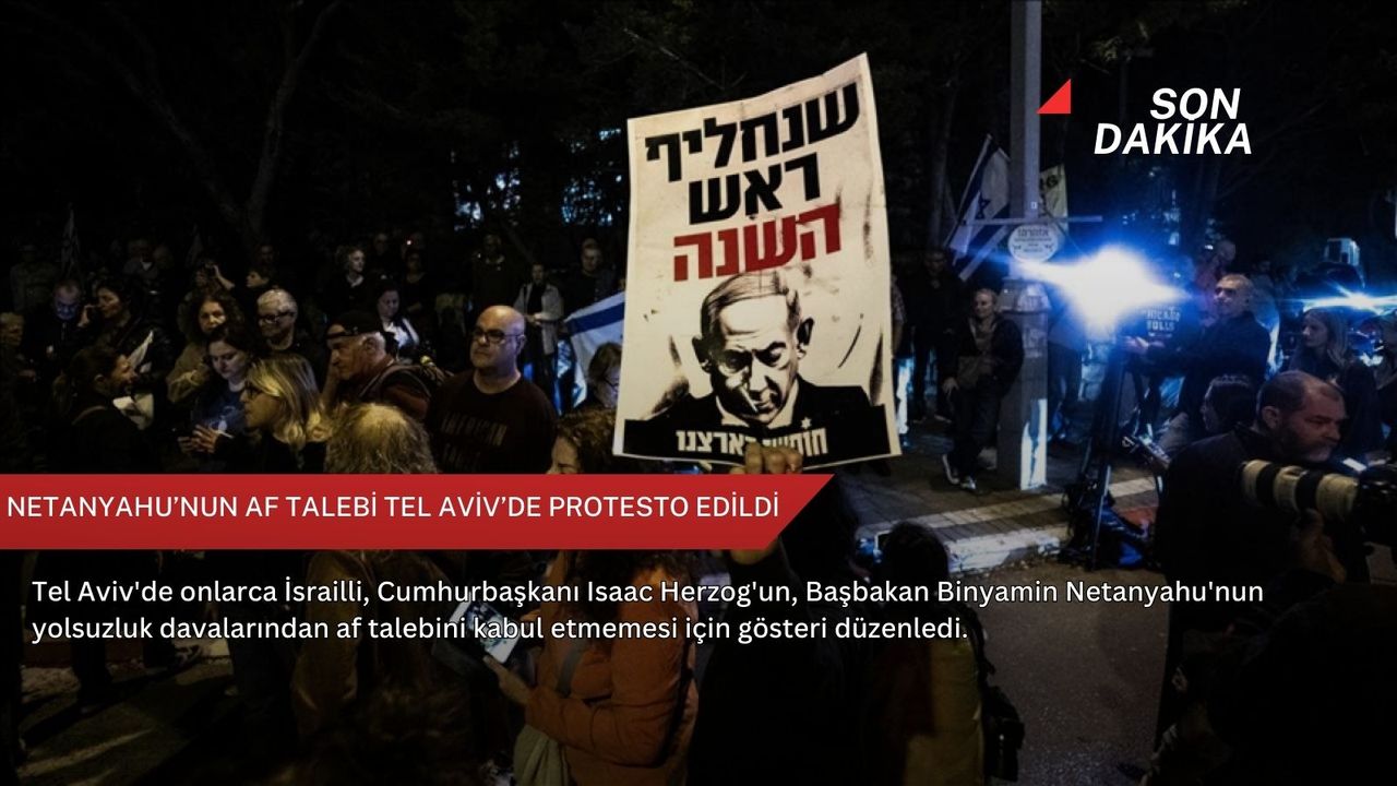 Times of Israel gazetesinin haberine göre, Herzog'un evinin önünde toplanan İsrailliler, Netanyahu'nun, yolsuzluk davaları için af talebinde bulunmasını protesto etti.