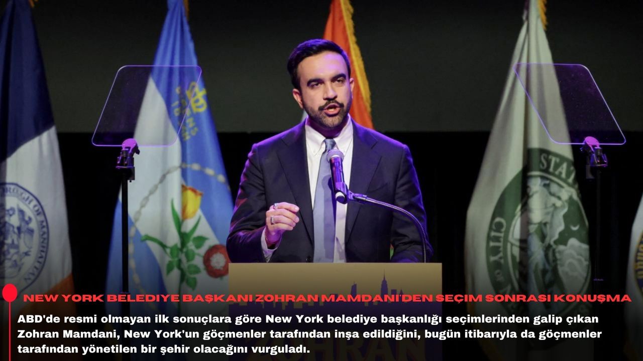 Resmi olmayan ilk sonuçlara göre oyların yüzde 50,4'ünü alarak New York'un ilk Müslüman belediye başkanı olan Mamdani zafer konuşması yaptı.