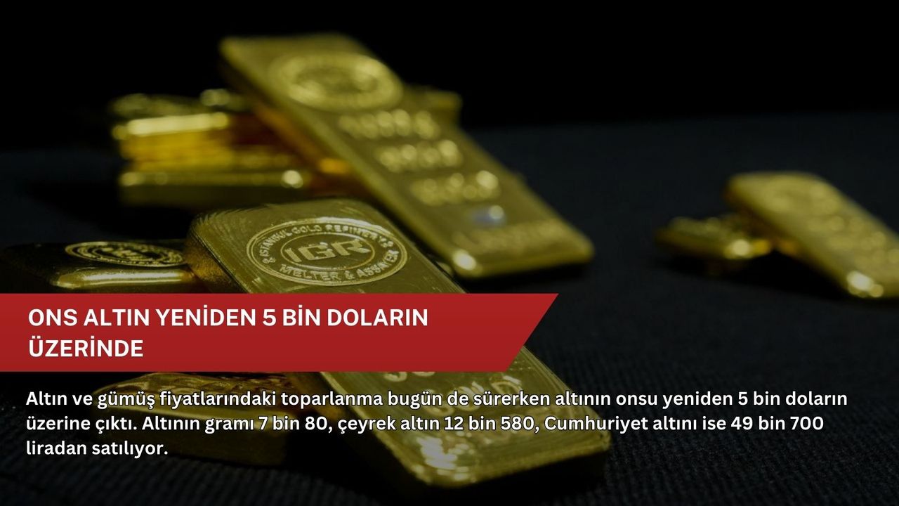 Altın ve gümüş fiyatlarındaki toparlanma bugün de sürerken altının onsu yeniden 5 bin doların üzerine çıktı.