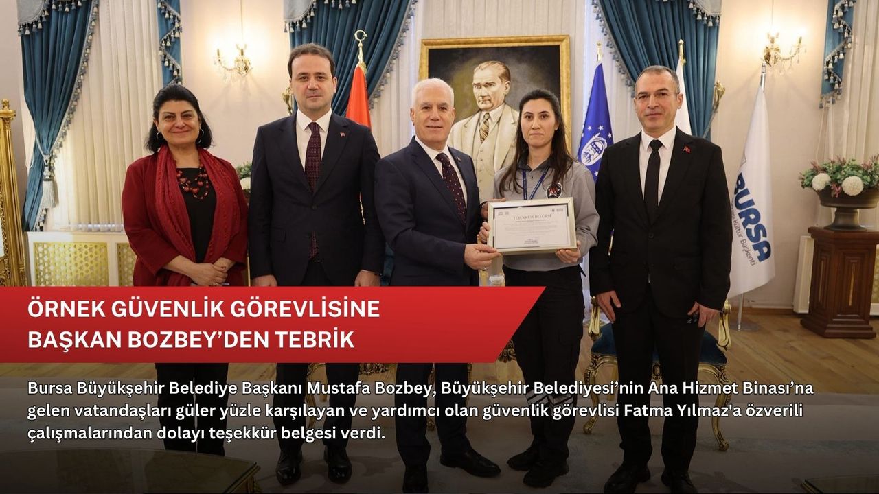 Belediye binasına gelenlerin Bursa Büyükşehir Belediyesi’ne yaraşır bir şekilde karşılanmasının, insanca yaklaşımın ve doğru yönlendirilmelerinin son derece önemli olduğunu söyleyen Başkan Mustafa Bozbey, “Güvenlik görevlisi personelimiz Fatma Yılmaz'ın vatandaşa olan yaklaşımı, bilgilendirmesi ve ardından çalışma arkadaşlarına geri bilgi vermesini takdir ediyoruz. Kendisini tebrik ediyorum, kutluyorum. Tüm personele örnek olmasını diliyorum” dedi.