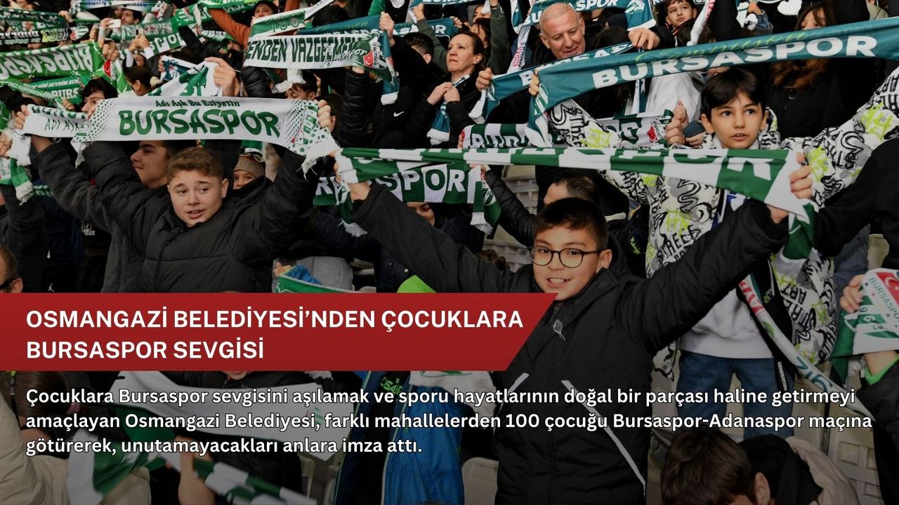 Osmangazi Belediyesi, sosyal ve sportif etkinliklerle çocukların fiziksel, sosyal, kültürel gelişimlerine katkı sağlamayı sürdürürken, çocukları sporla buluşturmaya ve Bursaspor sevdası etrafında bilinçlendirmeye devam ediyor. Bu kapsamda Osmangazi Belediyesi, Armutköy, Akpınar ve Yeniceabat mahallelerinden 100 çocuğu Bursaspor-Adanaspor A.Ş. karşılaşmasını izlemek üzere stada götürdü.