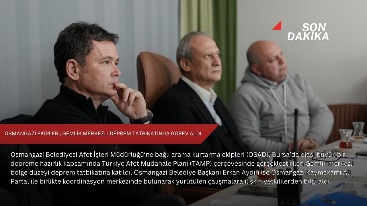 Güçlü bir koordinasyon sağlamanın önemine dikkat çeken Başkan Erkan Aydın, “Gemlik merkezli olduğu varsayılan bir deprem senaryosu üzerinden, Osmangazi dahil yedi ilçemizin katılımıyla kapsamlı bir deprem tatbikatı gerçekleştirdik. Sayın Valimizin talimatları doğrultusunda, Kaymakamlarımız ve ilgili kurumlarımızla birlikte olası bir afet anında yapılması gerekenleri sahada uygulamalı olarak değerlendirdik. Elbette temennimiz böyle felaketleri yaşamamak. Ancak yaşanması durumunda, ilk anda doğru müdahalenin ve güçlü koordinasyonun insan hayatı açısından ne kadar önemli olduğunu geçmişte yaşadığımız depremlerden biliyoruz. Bu tatbikatla da olası bir afete karşı hazırlık seviyemizi bir kez daha gözden geçirmiş olduk. Biz, afetlere hazırlık çalışmalarımızı kararlılıkla sürdürüyoruz. Bakanlığımızdan kamu yararı belgesi alınan ve 17 bin metrekarelik alanda planlanan Afet Koordinasyon Merkezi’ni de en kısa sürede ilçemize kazandırmayı hedefliyoruz. Gece boyunca özveriyle görev yapan tüm ekip arkadaşlarıma ve katkı sunan kurumlarımıza teşekkür ediyorum” diye konuştu.