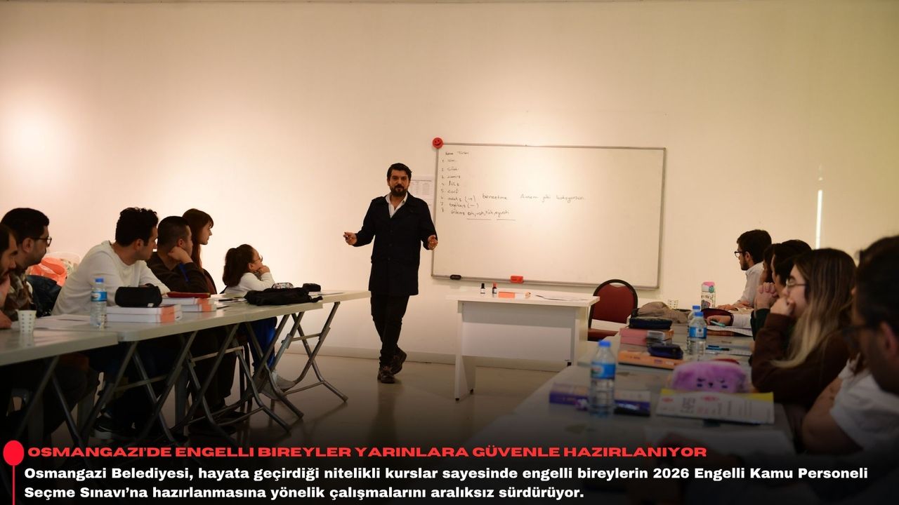 Osmangazi Belediyesi, engelli bireylerin istihdama katılımını artırmak ve iş hayatında daha güçlü bir şekilde yer almalarını sağlamak amacıyla Osmangazi Kent Konseyi ve Kent Konseyi Engelliler Meclisi iş birliğiyle ücretsiz E-KPSS kurslarını hizmete sunuyor. Soğanlı Kültür Merkezi’nde düzenlenen bu eğitimler, Cumartesi, Pazar ve Pazartesi günleri 16.30–22.00 saatleri arasında gerçekleştiriliyor. Coğrafya, tarih, matematik, Türkçe ve Anayasa gibi pek çok derste uzman eğitmenler eşliğinde sınava hazırlanan kursiyerler, geleceğe daha emin adımlarla ilerliyor.