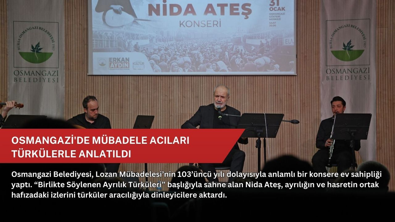 Göçlerin ve insan hikayelerinin türkülerini birlikte dile getireceklerini belirten Nida Ateş, “Hepimiz biliyoruz ki göç, dünyanın olduğu kadar ülkemizin ve şehirlerimizin de en önemli meselelerinden biri. 103 yıl önce büyük bir travma yaşayan insanların bugün artık çocukları ve torunları var. Ancak o sancılı sürecin izleri ve hatıraları, hala toplumsal hafızamızda varlığını sürdürüyor. Biz de bu konserde dilimiz döndüğünce, elimizden geldiğince o döneme ait yaşanmışlıkların türkülere dönüşmüş hallerini sizlerle paylaşmaya çalışacağız. Sadece ezgiler değil; o ezgilerin ardında kalan anekdotları, bilgileri ve duyguları da birlikte hatırlamak istiyoruz. Bu anlamlı geceyi bizlere sunduğu için Osmangazi Belediyesi’ne teşekkür ediyorum” ifadelerini kullandı.