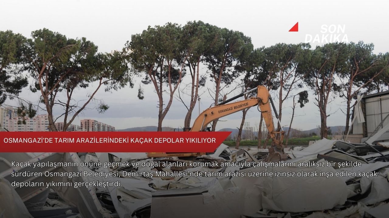 Osmangazi Belediyesi, başta tarım alanları ve doğal bölgeler olmak üzere çevreyi korumaya yönelik olarak izinsiz yapıların önüne geçmek için faaliyetlerine kararlılıkla devam ediyor. Bu kapsamda harekete geçen Osmangazi Belediyesi Yapı Kontrol Müdürlüğü ekipleri, Demirtaş Mahallesi Demirtaş Yolu Caddesi yol kenarında bulunan tarım arazisi üzerinde yer alan yaklaşık 15 bin metrekarelik alanda inşa edilen kaçak depoların yıkımını kontrollü bir şekilde gerçekleştirdi.