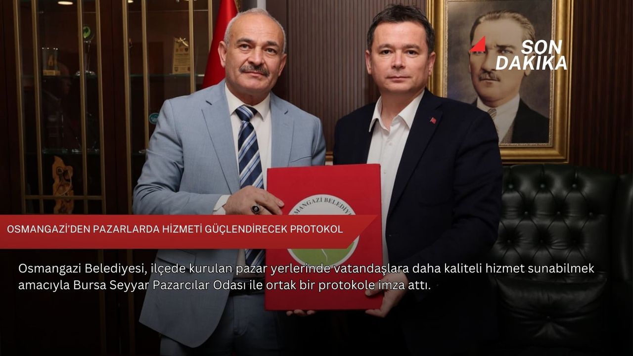 Osmangazi’de yaşayan vatandaşlara 7/24 daha nitelikli hizmet sunmayı hedefleyen Osmangazi Belediyesi, pazar yerlerindeki hizmet kalitesini artırmak amacıyla Bursa Seyyar Pazarcılar Odası ile iş birliği yaptı. Osmangazi Belediye Başkanı Erkan Aydın ile Bursa Seyyar Pazarcılar Odası Başkanı Refik Aksu arasında başkanlık makamında imzalanan protokol kapsamında, ilçede kurulan pazar yerlerinin daha çağdaş, düzenli ve sağlıklı bir yapıya kavuşturulması hedefleniyor.