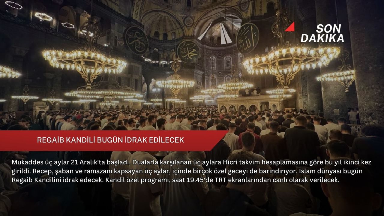 Regaip Kandili özel programı Konya Sultan Selim Camii'nden saat 19.45'de TRT-1 ekranlarından canlı olarak verilecek.
