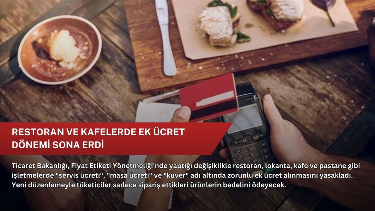 Bundan böyle restoran, lokanta, kafe ve benzeri yiyecek içecek hizmeti sunan işletmeler; menülerinde veya fiyat listelerinde "servis ücreti", "kuver ücreti", "masa ücreti" ya da herhangi bir isim altında ilave ücret alınacağına dair ifadelere yer veremeyecek.