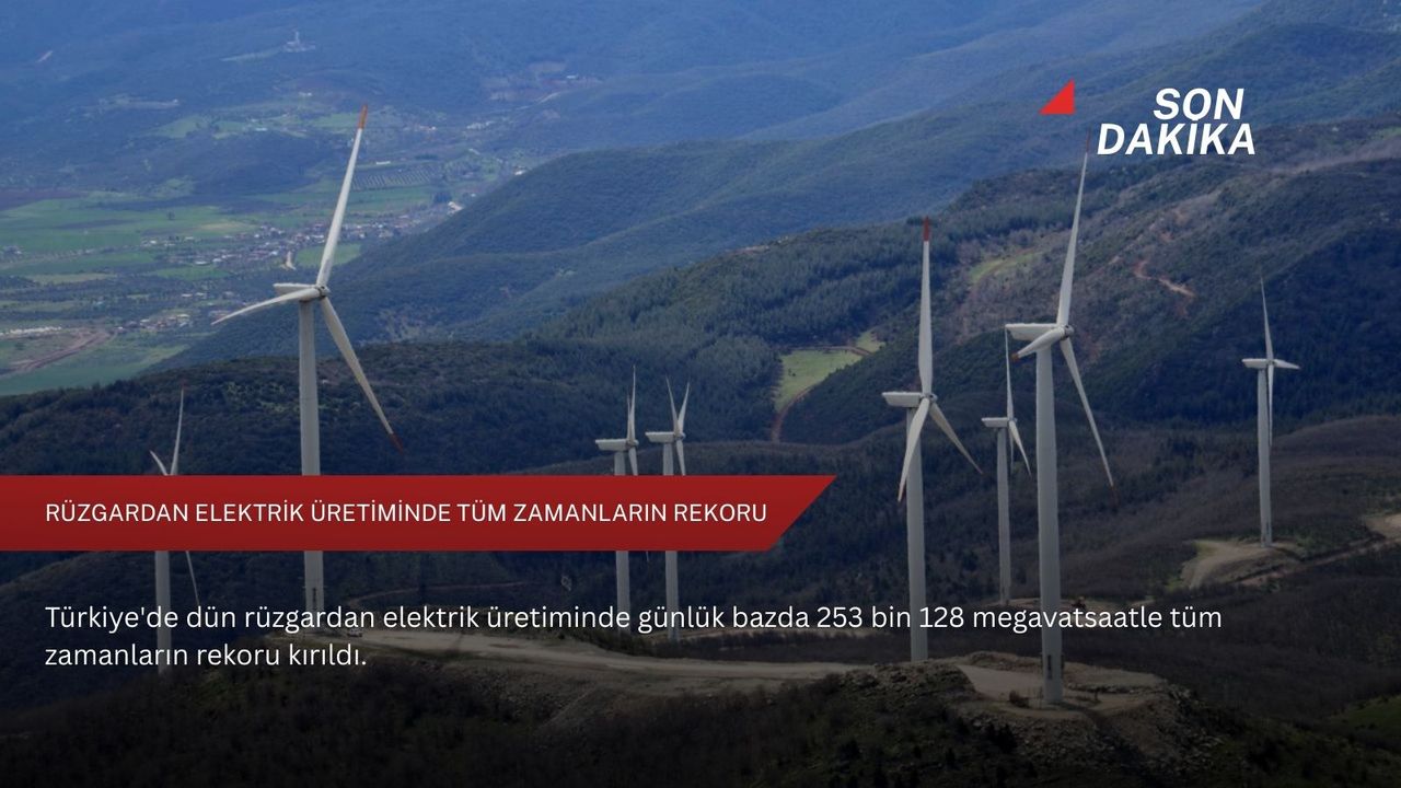 Türkiye'de rüzgardan elektrik üretiminde en son 29 Haziran 2024'te günlük bazda 228 bin 604 megavatsaatle rekor kırılmıştı.