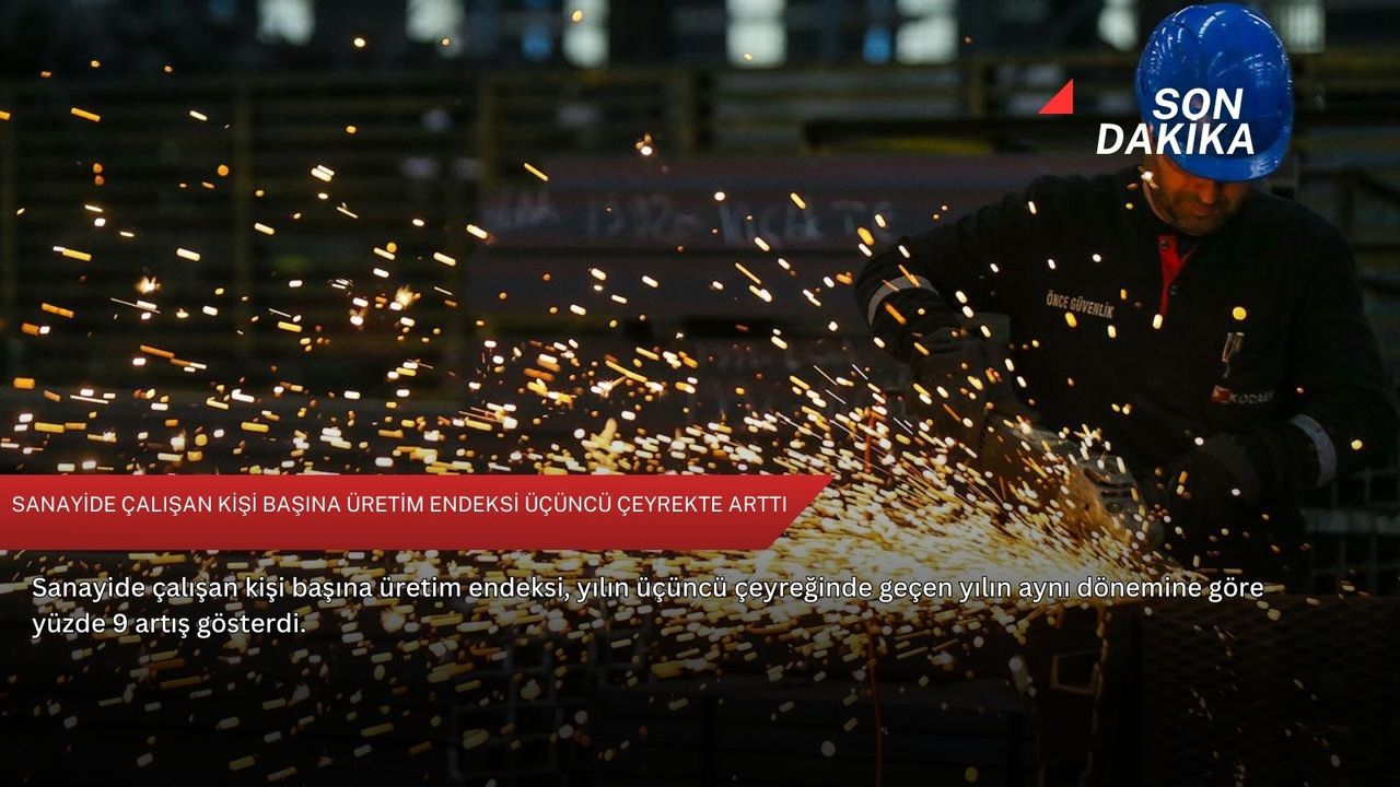 Buna göre, mevsim ve takvim etkilerinden arındırılmış toplam sanayi çalışan kişi başına üretim endeksi, bir önceki döneme göre yüzde 0,4, geçen yılın aynı dönemine göre yüzde 9 yükseldi