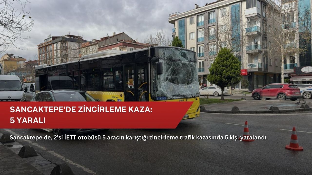 Atatürk Caddesi'nde aynı istikamette ilerleyen 2 İETT otobüsü, 1 kamyonet ve 2 otomobil zincirleme kaza yaptı.