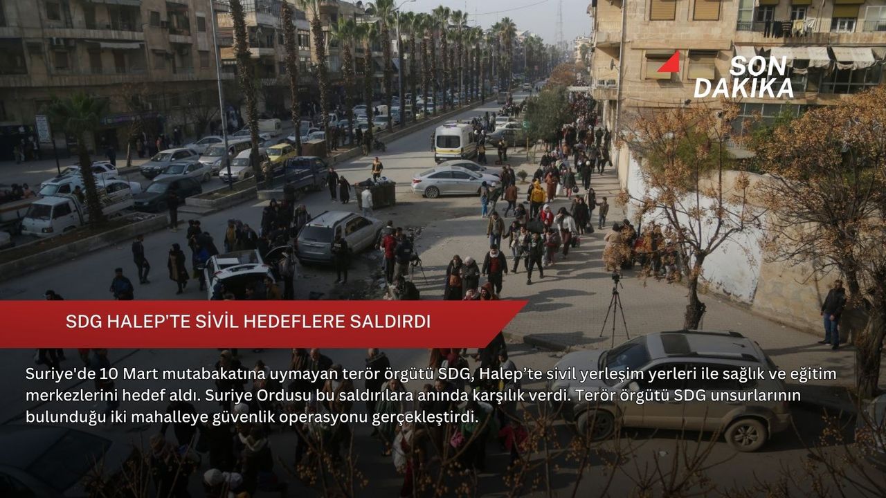 Suriye’de terör örgütü SDG 10 Mart mutabakatını yine ihlal etti. Halep'te kontrol altında tuttukları Şeyh Maksud ve Eşrefiye mahallelerinden saldırılar gerçekleştirdi.