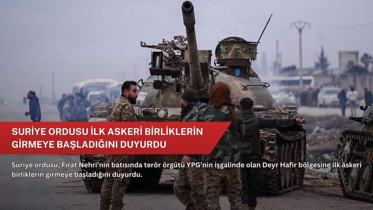 Suriye Devlet Televizyonu el-İhbariyye, ordu birliklerinin ilk gruplarının Deyr Hafir'den itibaren Fırat Nehri'nin batı bölgesinde ilerlediğini duyurdu. Terör örgütü YPG elebaşlarından Ferhat Abdi Şahin'in, örgüt unsurlarının sabah saat 07.00 itibarıyla Fırat'ın doğusuna çekileceğini açıklamasının ardından bölgedeki askeri hareketlilik hız kazandı.