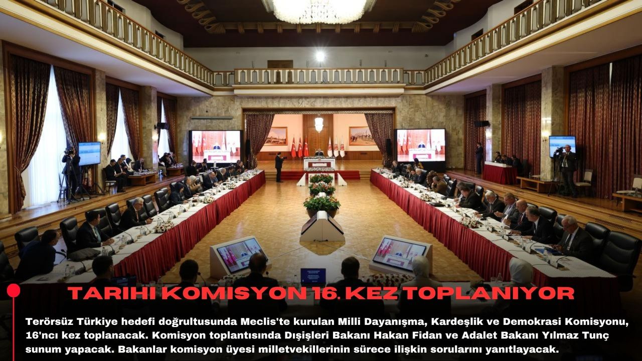 Terörsüz Türkiye hedefi için Meclis'te yoğun mesai devam ediyor. Sürecin artık sonuna geliniyor. Milli Dayanışma, Kardeşlik ve Demokrasi Komisyonu bugün 16'ncı toplantısını yapacak.