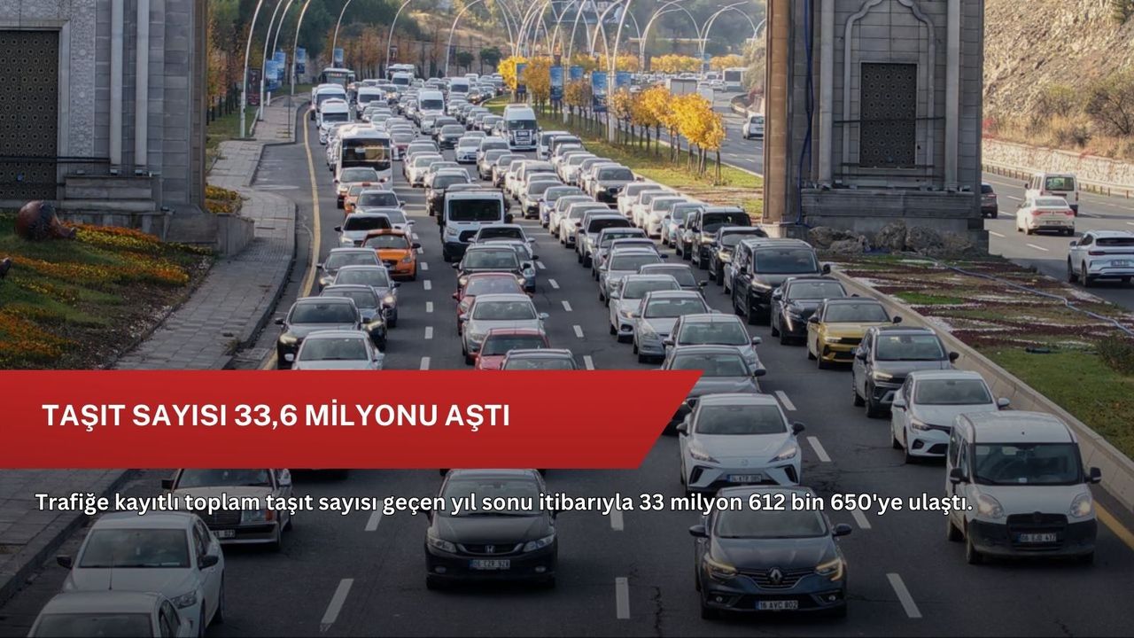 2025 sonu itibarıyla trafiğe kayıtlı toplam taşıt sayısı bir önceki yıla göre yüzde 7,4 artışla 31 milyon 301 bin 389'dan 33 milyon 612 bin 650'ye yükseldi.